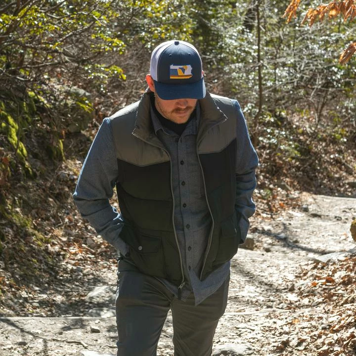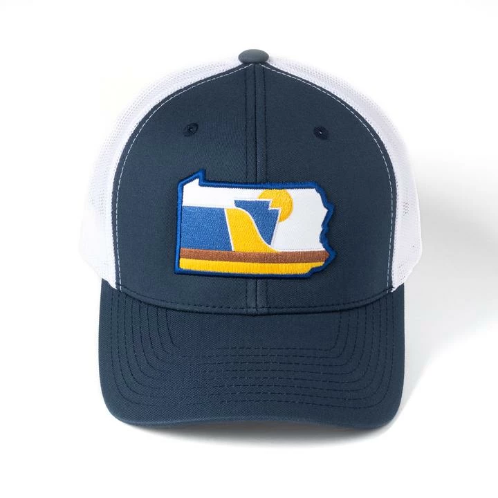 RepresentPA with The Allegheny Pennsylvania Hatโa snapbackย modern-fit trucker patch hat in navy blue and white.ย