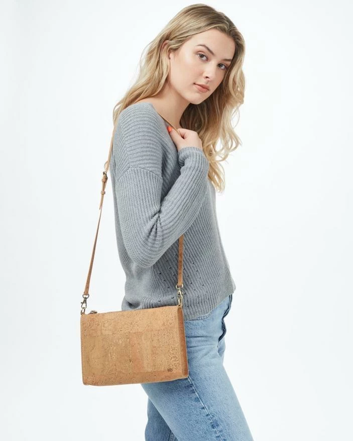 Did you know that sustainably stripping cork trees can actually extend the treeโs life by 150 years? This versatile cork bag can be worn as a clutch or cross-body โ you choose.