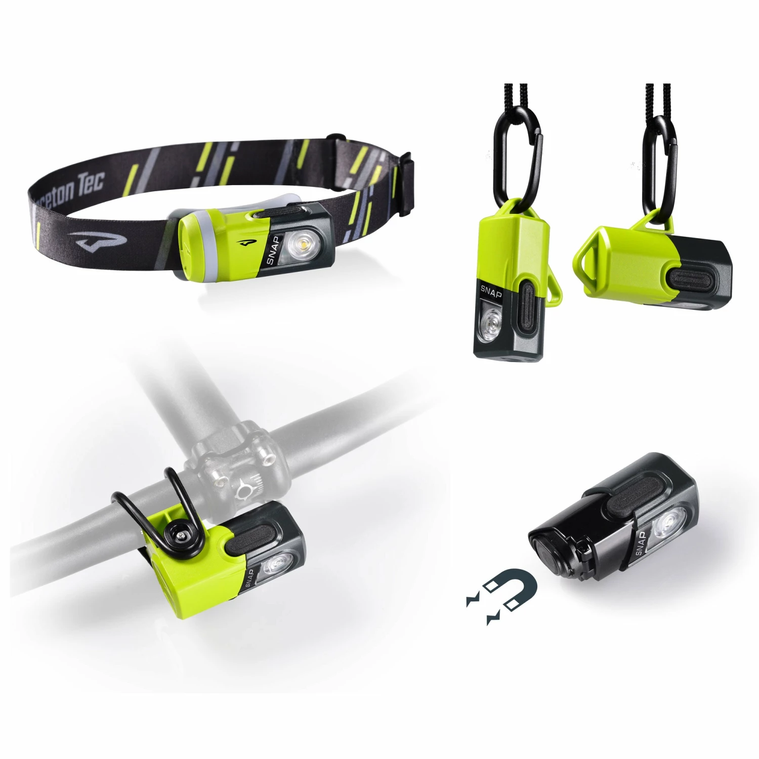 The SNAP starts as a straightforward headlamp with additional focus on modular, adaptable design. SNAPโs head unit is removable from the headlamp bracket for handheld operation and use with the included accessories, snapping into place with a strong magnet.