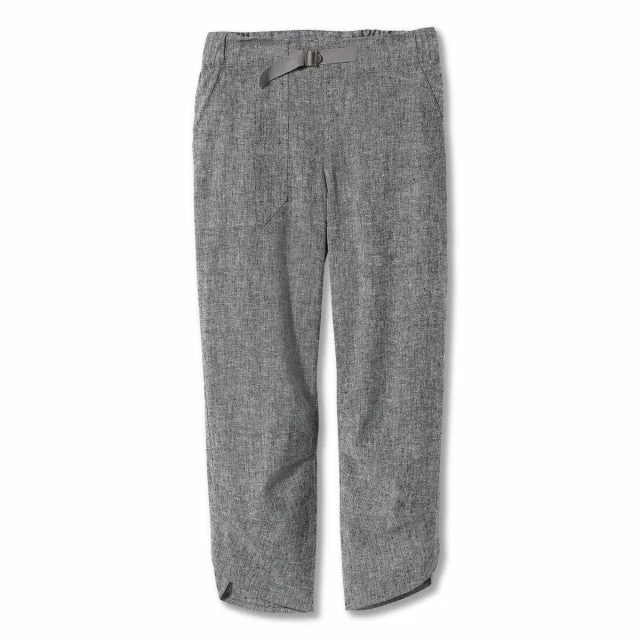 Cute Capri for summer’s adventures. The soft eco-conscious woven fabric combines recycled polyester’s quick-dry performance with hemp’s durability. The hem has a scalloped crossover design for fun style.